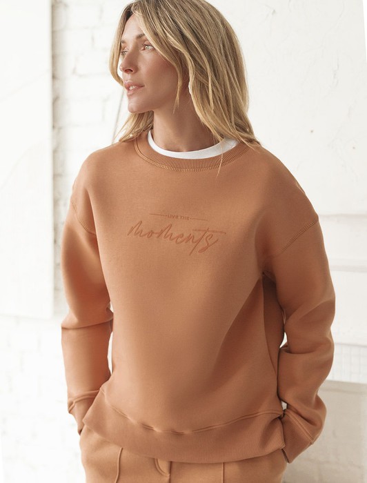 Состав: 80%Хлопок 20%ПЭ Параметры модели на первом фото: Рост 170, бюст 89, талия 63, бедра 92Свитшот с круглым воротом выполнен из премиального футера трехнитки с теплым начесом. Модель дополнена фактурным лаконичным принтом. Перевод: «Живи мгновениями». Свободный крой подходит для любой фигуры и впишется в любой гардероб. Сочетается в костюме с брюками D44.129