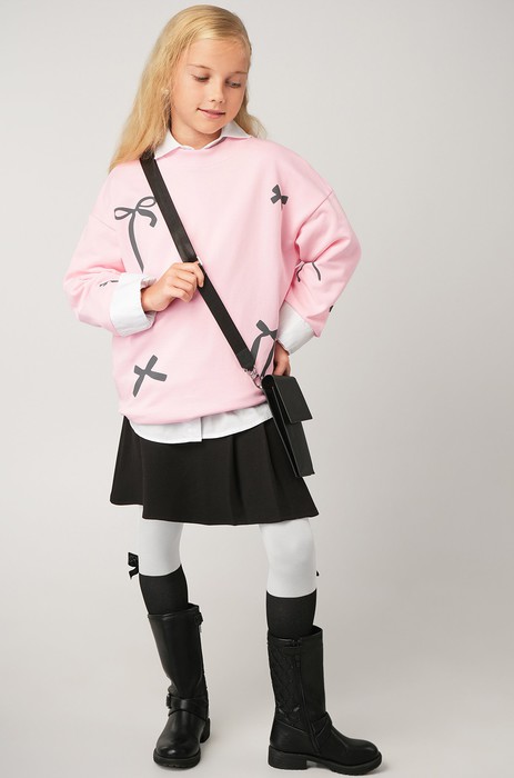 Розовый свитшот с принтом бантики — тот самый вариант, который покорит сердце любой девочки! Теплый, стильный и удобный, он станет любимым в гардеробе. Базовый джемпер, который идеально подходит для подростка — прекрасный демисезонный вариант на осень и весну.