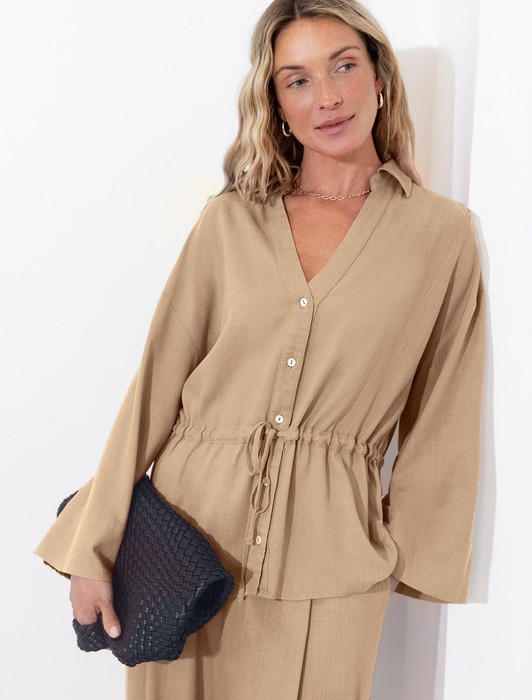 Совместные покупки Тюмень Женская одежда Костюмы, комплекты — Свободная блузка с кулиской на талии изо льна с вискозой