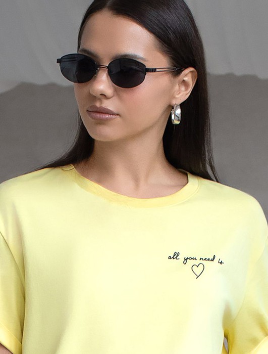 Состав: 92%Хлопок 8%ПУ Плотность: 170 Г/м2Модная футболка лимонного цвета привлекает внимание своим интересным дизайном и ярким принтом. Благодаря прямому крою изделие комфортно садится на любую фигуру, в том числе на большие размеры, и не сковывает движений. Круглый вырез подчеркивает современный стиль, а натуральный материал плотностью 170 Г/м2 из хлопка с добавлением эластана обеспечивает удобство в повседневной носке и приятные тактильные ощущения. Прочность и износостойкая структура позволяют сохранять свежий внешний вид после множества стирок. Принт в виде надписи и сердца нанесен красками с устойчивым покрытием, перевод надписи: Al you need is love- Все, что вам нужно это любовь. Стильная футболка гармонично вписывается в любой гардероб и подойдет для прогулок, отдыха или неформальных встреч. Благодаря особенностям кроя модель хорошо сидит, скрывая недостатки и подчеркивая достоинства. Яркая футболка идеально сочетается с базовыми вещами, позволяя создавать новые интересные образы каждый день.