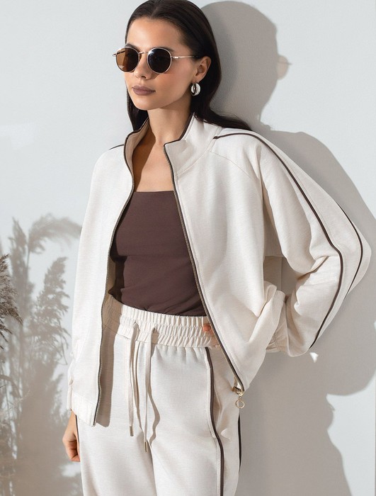 Совместные покупки Тюмень Женская одежда Футболки — Свободный бомбер с лампасами на молнии из петельчатого футера двухнитки с эласта