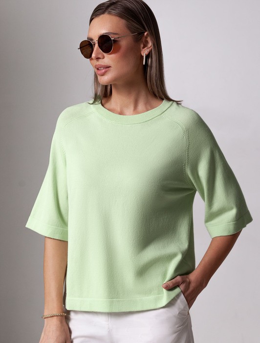 Совместные покупки Тюмень Женская одежда Футболки — Свободный джемпер с рукавом 3/4 тонкой вязки из вискозы