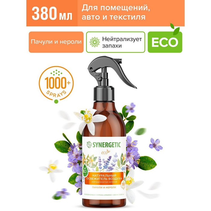 Биоразлагаемый освежитель воздуха, нейтрализатор запахов Synergetic "Пачули и нероли" на водной основе на 98,2% состоит из натуральных компонентов. Парфюмерная композиция с эфирными маслами сандала, нероли и пачули наполняет воздух цитрусовым древесным ароматом. Гипоаллергенная формула безопасна для людей и животных.