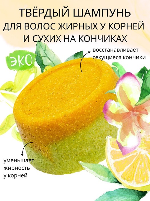 Твердый шампунь натуральный Дуэт, для волос жирных у корней и сухих на кончиках.
