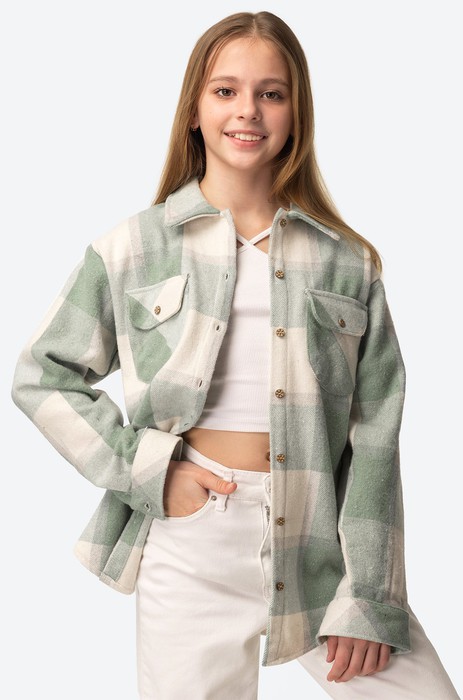 Теплая удлиненная детская рубашка в клетку для девочек и девочек-подростков выполнена из нежной фланели. Фланелевая рубашка для детей не стесняет движений благодаря свободному крою. Карманы на груди, оттенок полынь, застежка на пуговицах – каждая деталь продумана для стильного и уютного образа.