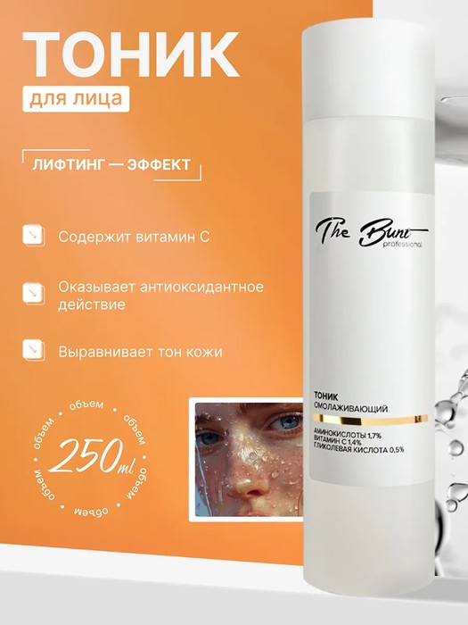 Тоник для лица омолаживающий с Витамином С и комбинацией активных ингредиентов завершает ритуал ежедневного очищения кожи, дарит мгновенное ощущение комфорта, оказывает антиоксидантное действие, подготавливает к последующему нанесению уходовых средств.