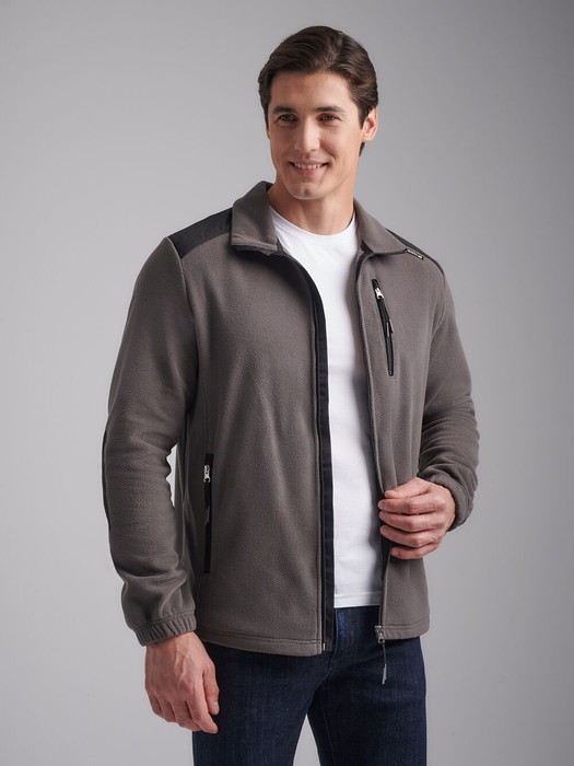 Толстовка мужская из флиса с капюшоном. Низ куртки и низ рукавов выполнены с эластичной рибаной. Толстовка с накладными карманами "кенгуру". Рукава "реглан". По всем швам выполнена отделочная строчка. По низу толстовки расположен, вдоль шва притачивания пояса настрочен шеврон с фирменным логотипом. В капюшоне расположены декоративные шнуры.