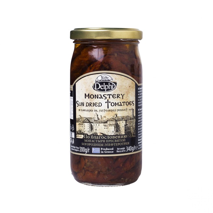 Описание Состав: томаты сушеные, подсолнечное масло, винный уксус, морская соль, каперсы, чеснок, травы и специи, регулятор кислотности: лимонная кислота. Масса нетто 340г Масса основного продукта 200г Пищевая/Энергетическая ценность на 100г: 181кКал/749кДж Жиры 15г из них насыщенные 1,9г, углеводы 5,2г из них сахар 5г, белки 3г, соль 2,5г Продукт не содержит ГМО Продукт пастеризован Хранить в сухом прохладном месте. Открытую банку хранить в холодильнике и употребить в течение 14 дней. Срок годности 24 месяца. Изготовитель: Intercomm Foods S.A. 8th klm Larissa Sykourion, 41110 Larissa, Greece Страна происхождения Греция. Изготовлено в соответствии со спецификацией. Производство сертифицировано по ELOT EN ISO 22000:2005 Дата производства: смотри на крышке. Годен до: смотри на крышке