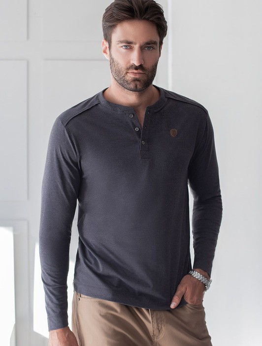 Совместные покупки Тюмень Мужская одежда Футболки — Тонкий лонгслив с круглым воротом на пуговицах из премиального хлопка с эластано