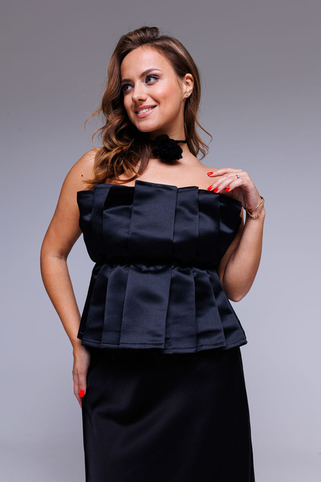Топ черный атлас, обработаны по переду складки, застежка сбоку на потайную молнию