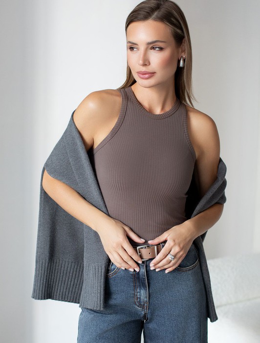 Топ из трикотажа в широкий рубчик