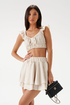Топ из атласной ткани, покроенный по косой. По переду нагрудные вытачки. Вырез горловины фигурный . Бретели могут регулироваться.