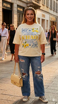 Совместные покупки Тюмень Женская одежда Футболки — Топ на регулируемых бретелях с V вырезом из 100% хлопка с принтом