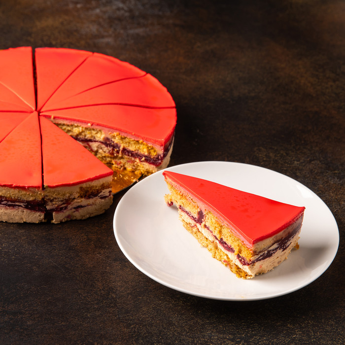 Состав: сливки пастеризованные, шоколад белый (сахар, масло какао, молоко сухое цельное, сухая молочная сыворотка, эмульгатор соевый лецитин, ароматизатор натуральный ваниль), клюква, мука пшеничная в/с, мед, глазурь «Гляссаж» (сироп глюкозно- фруктозный, вода, сахар, желатин, желирующий агент агар, влагоудерживающий агент глицерин, масло растительное, эмульгатор моно- и диглицериды жирных кислот, краситель кармины, соль поваренная пищевая, регулятор кислотности лимонная кислота, консервант сорбат калия), вода питьевая, масло сливочное (сливки пастеризованные), сахар, яичный меланж пастеризованный, желатин говяжий, цедра апельсина, цедра лимона, имбирь молотый, мускатный орех молотый, корица, кардамон, соль пищевая, разрыхлитель гидрокарбонат натрия, регулятор кислотности лимонная кислота.