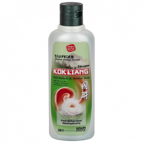 Травяной шампунь Kokliang предотвращает выпадение волос, помогает избавиться от перхоти, хорошо промывает волосы.Основные свойства шампуня Kokliang: 1 .Создает оптимальное питание клеток кожи головы и волос, 2. Помогает против перхоти, зуде кожи головы, 3. Помогает активировать спящие волосяные луковицы, 4. Увлажняет локоны по всей длине, 5. Питает кожу головы, оказывает омолаживающее и тонизирующее влияние, 6. Хорошо дезодорирует кожу головы, 7. Подходит для витаминизации и наилучшего питания клеток, 8. Борется с выпадением локонов, 9. Устраняет покраснения и зуд на коже.
