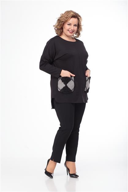Главной особенностью туники являются функциональные карманы, выполненные из черно-белого эко-меха.