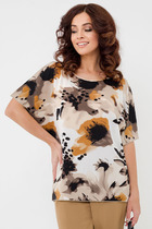 Туника молодежная полуприлегающего силуэта, с печатью и коротким рукавом. Вырез-лодочка, по переду асимметрия из 3-х видов ткани.