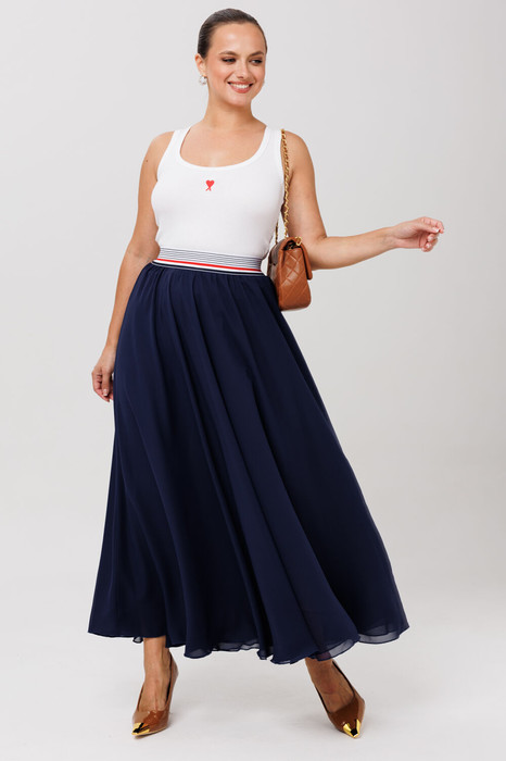 Юбка макси из нашей новой коллекции – это идеальное сочетание стиля и комфорта, созданное специально для тех, кто ценит элегантность и утончённость в повседневной жизни. Эта женская юбка из двойного шифона впечатляет своим дизайном с чуть игривым акцентом на поясе, который придаёт образу особую изюминку. Великолепный фасон-юбка солнце длиной макси, который подчеркнёт вашу женственность и стиль. В этом изделии применены лучшие материалы: мягкий шифон создает воздушность и неповторимый шарм. Фасон универсален, а использование резинки на поясе повышает комфортность носки, позволяя юбке адаптироваться под индивидуальные особенности фигуры. Юбку леко сочетать с различными верхами: топ, блузка, футболка, кружевной жакет, свитер или жакет из тексиля- все это позволит создавать различные образы на разные случаи.