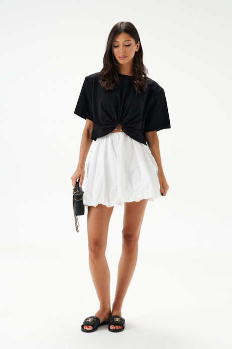 Юбка-баллон. Выполнена из полотна "тафта" белого цвета. Характеристики: хлопковая подкладка, пояс на резинке, верх и низ дополнительно присборен. Длина юбки 40 см