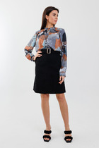 Классическая юбка полуприлегающего силуэта выполнена из костюмной ткани светлого оттенка. Характеристики: полуприлегающий силуэт, подкладка, стабильный пояс, застёжка потайная тесьма молния в среднем шве заднего полотна изделия. Длина изделия 53 см.