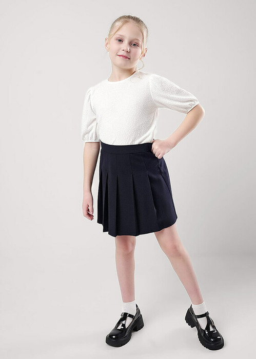 Стильная юбка в складку станет отличным дополнением к вашему гардеробу! Комфортная посадка по фигуре, актуальный объём и длина- то, что нужно для создания повседневного школьного образа и отличного настроения!