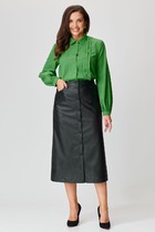 27.03 Vilatte Юбка-миди из хлопка с разрезом D26.182 темно-бежевый