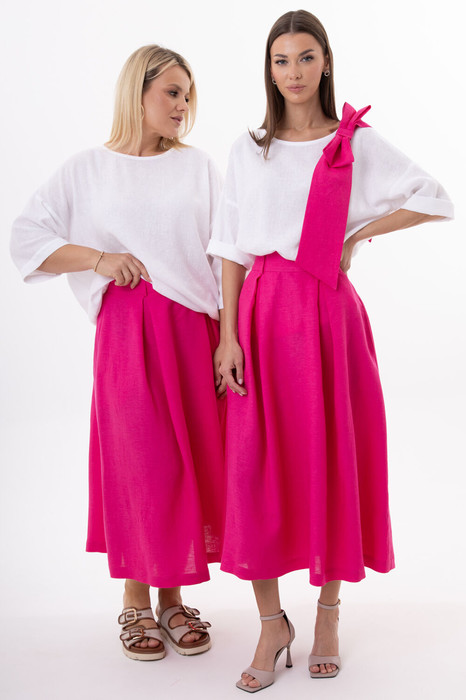 Элегантная женская юбка из белорусского льна с вискозой — идеальное сочетание природной эстетики, функциональности и комфорта. Изготовленная из премиального материала, она объединяет воздухопроницаемость льна и мягкость вискозы, создавая идеальный вариант для теплых дней. Встречные складки, боковые карманы и потайная молния по спинке делают эту модель уникальной, подчеркивая внимание к деталям и белорусское мастерство.