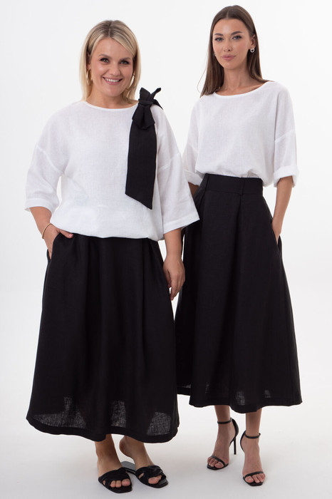 Элегантная женская юбка из белорусского льна с вискозой — идеальное сочетание природной эстетики, функциональности и комфорта. Изготовленная из премиального материала, она объединяет воздухопроницаемость льна и мягкость вискозы, создавая идеальный вариант для теплых дней. Встречные складки, боковые карманы и потайная молния по спинке делают эту модель уникальной, подчеркивая внимание к деталям и белорусское мастерство.