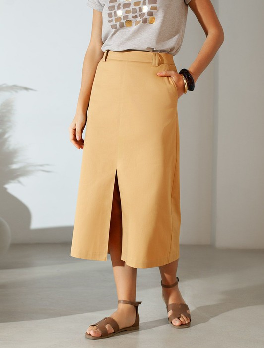 Юбка-миди из хлопка с разрезом