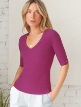 Свободный топ с V-вырезом и цельнокроеным коротким рукавом изо льна с вискозой