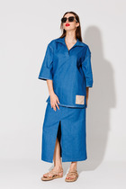 Юбка длиной миди прямая на резинке, немного расширенного силуэта. Разрез по спинке по среднему шву. Изделие без подкладки
