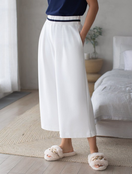 Состав: 95%Хлопок 5%ПУ Плотность: 240 Г/м2Свободные брюки прямого силуэта выполнены из эластичного футера двухнитки. Длина изделия до щиколотки. В боковых швах расположены карманы. Внутренняя часть кармана из тонкого хлопка в тон полотна. Модель дополнена эластичным поясом, с контрастной полосой и золотистым логотипом бренда. Сочетается в костюме с джемпером D49.083 и D49.086. Правила ухода: использовать жидкое моющее средство (гель для стирки), добавлять к нему кислородный пятновыводитель для цветных вещей, и салфетки (защита от окрашивания). Стирка при 30 градусах, отжим на максимальных оборотах.