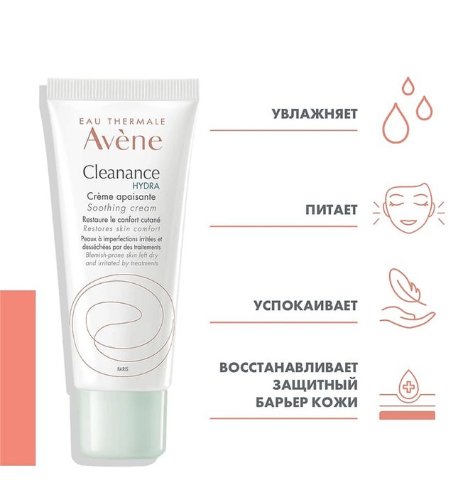 Совместные покупки Тюмень Косметика и парфюмерия Кремы для лица — Успокаивающий крем для пересушинной проблемной кожи AVENE CLEANANCE HYDRA
