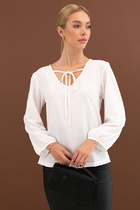 Легкая свободная блуза с короткими рукавами из длинноволокнистого гребенного хлопка. По полочке декоративная складка с эффектом запаха.