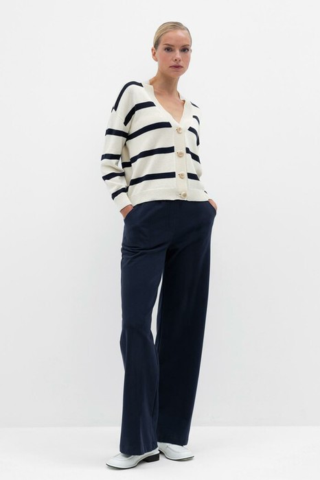 Брюки прямого кроя и боковыми карманами из мягкого петельчатого футера с добавлением эластана. Пояс со шнурком позволяет регулировать посадку. Идеальный и комфортный вариант на каждый день.