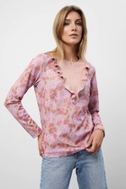 Вязаный ажурный джемпер с короткими рукавами-буф. Манжеты и пояс, связаные ластиком придают изделию небольшой объем. Состав 50% хлопок, 50% акрил. Благодаря акрилу в составе изделие не пилингуется.