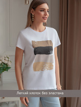 Базовая женская футболка из натурального хлопка с добавлением эластана. Принт изготовлен из стойких текстильных красителей.