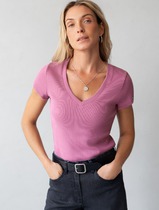 АКЦИЯ 8 марта! Футболка из плотного трикотажа в рубчик с V-образным вырезом