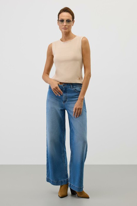Классическим элементом гардероба является базовый топ из хлопка. Широкие бретели делают изделие комфортным в носке и универсальным в повседневной жизни.