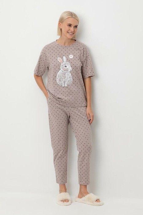 Совместные покупки Тюмень Женская одежда Пижамы, халаты — Very Neat пижама жен Е 20053/24/бежевый меланж,сердечки