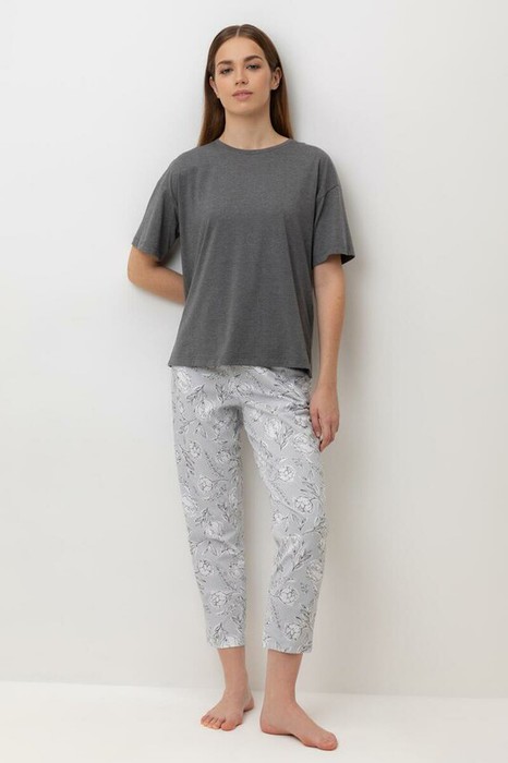 Легкий комплект для комфортного сна и отдыха. Свободная футболка с принтом и спущенной линией плеча комфортно садится по фигуре. Укороченные брюки с удобными боковыми карманами выполнены из набивного трикотажа. Гладкий материал приятен к телу и позволяет коже дышать.