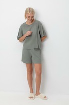 Легкий комплект для комфортного сна и отдыха. Свободная футболка с принтом и спущенной линией плеча комфортно садится по фигуре. Укороченные брюки с удобными боковыми карманами выполнены из набивного трикотажа. Гладкий материал приятен к телу и позволяет коже дышать.