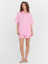 Комплект для сна и отдыха. Удлиненная футболка комфортно садится по фигуре. Бриджи из меланжевого трикотажа с добавлением лайкры с мягким поясом на резинке.