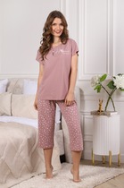 Комплект для комфортного сна и отдыха из трикотажного полотна в рубчик. Свободная футболка с V- образным вырезом. Брюки с мягким поясом на резинке удобно садятся по фигуре.
