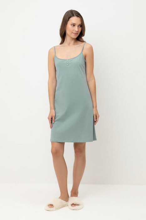 Элегантная женская сорочка с регулируемыми бретелями для комфортного сна. На груди декоративные пуговицы. Гладкий материал приятен к телу и позволяет коже дышать.