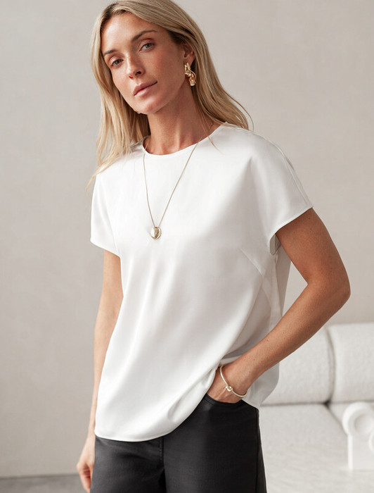 — Vilatte Блузка из стаина с коротким рукавом D29.276 натуральный белый