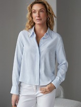 Блузка свободного силуэта в полоску из 100 % хлопка.