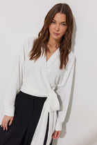 Совместные покупки Тюмень Женская одежда Блузки, рубашки — Vilatte Блузка с короткими рукавами из плотного струящегося сатина D29.280 кофей