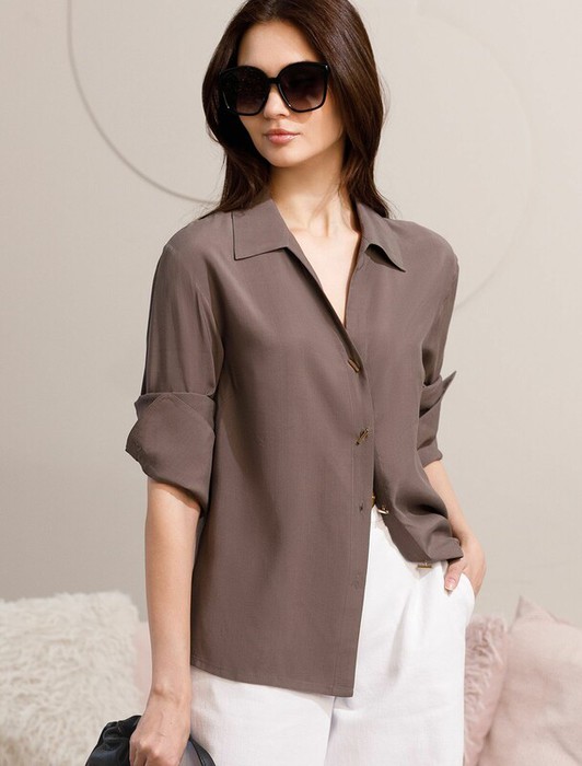 — Vilatte Блузка с широкими манжетами из вискозы с лиоцеллом D29.346 кофейный