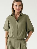 Совместные покупки Тюмень Женская одежда Блузки, рубашки — Vilatte Блузка свободного силуэта с золотистыми пуговицами D29.274 белый-синий